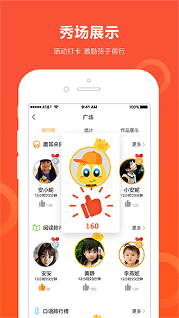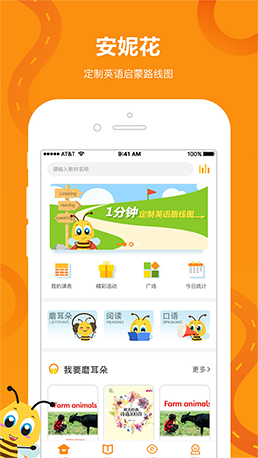 4、多维度激发学习动力:记录、统计、生成磨耳朵/阅读/口语存折,可录入其他设备数据;课程表功能帮助孩子学习规划并监督执行;Al评分功能,花蜜、金币奖励;广场晒作品,荣誉榜排名,参加活动奖励等