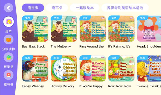 - 韵律节奏磨语感,情境对应磨理解,朗读磨Sight Words,Phonics规则渗透,适合不同年龄需求